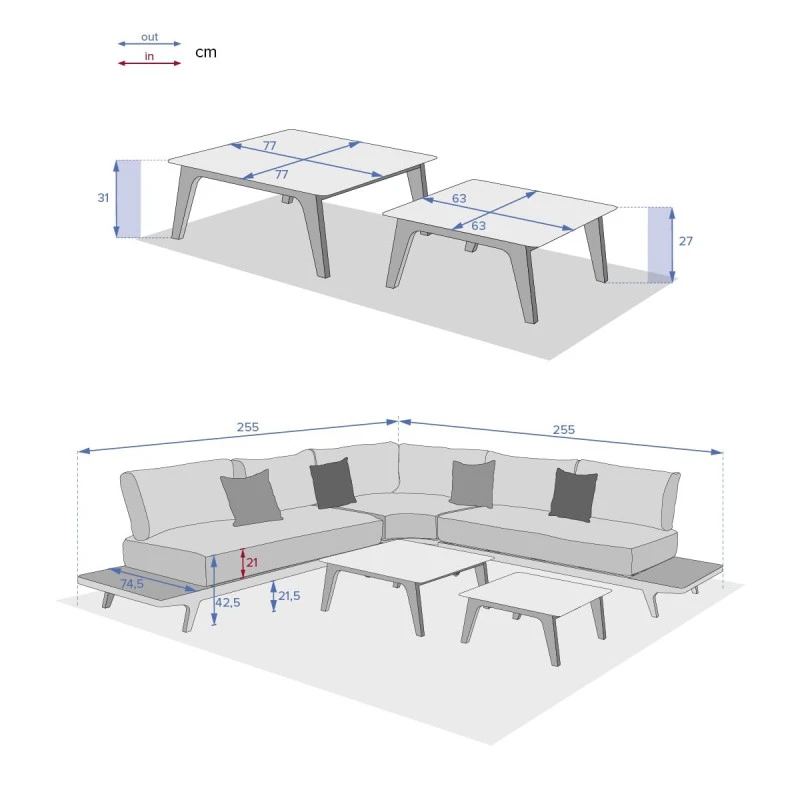 Les coussins en polyester 245g/m2 sont déhoussables et déperlants. A monter soi même.