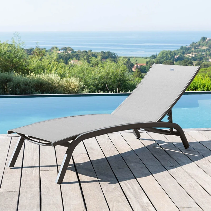 Profitez du soleil avec ce transat Bonao coloris galet et graphite de la marque Hespéride.